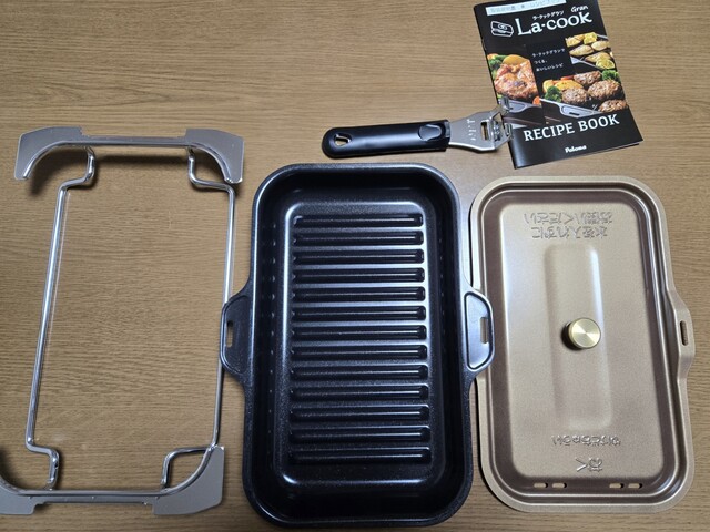 初回は焼き魚でした。今までは焼き加減の判断が難しかったようですが、レシピに焼き時間の指定があるのと、コンロにタイマー機能があるので、指定のとおりに「15分」と設定したところこの焼き上がりでした。掃除も楽ですし、焼き加減をいちいち確認する必要もなくこの焼き上がりですから、コンロも含めてよい買い物ができたなと。