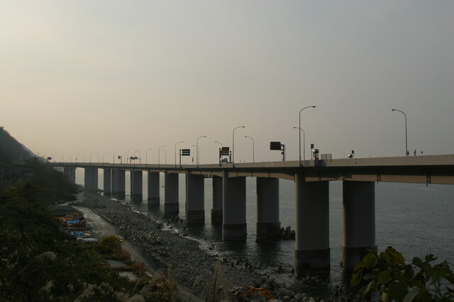 高速道路が海の上を通っています。すごい! ここを通るのは気持ちがいいですよ! ちなみに下の道はとても恐いです(^^;
