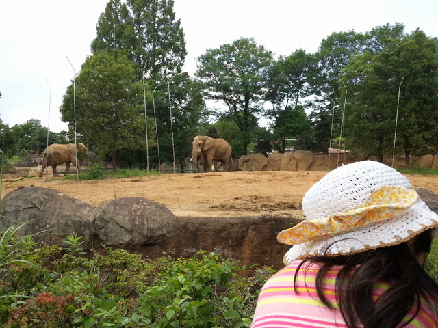 写真は象。娘だけでなく、わしも相棒も一気にテンションが上がります。この後(13時から)、象にエサやりの体験もできます。楽しみ!!
