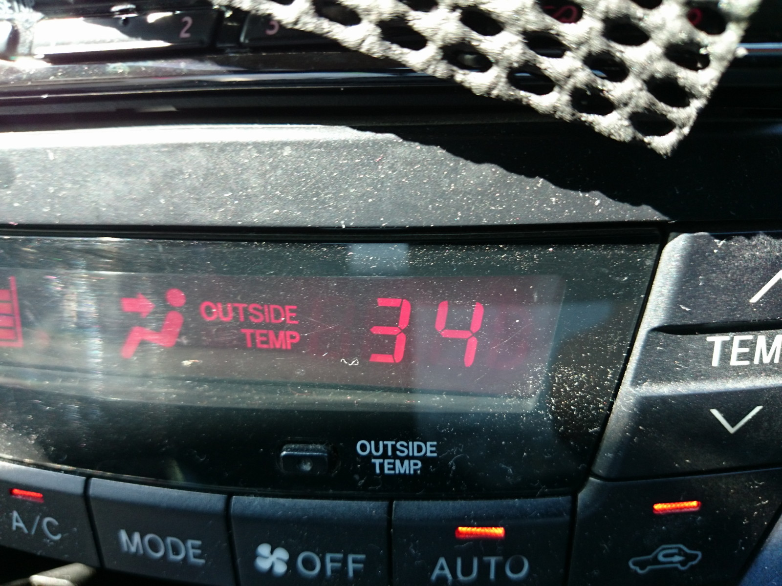 9:30の時点でこの気温、34度です。ぞっとしますねぇ。最高気温は36度の予想です。今日はエアコン必須、外にでてはいけない日ですね・・・仕事ですが(–;。