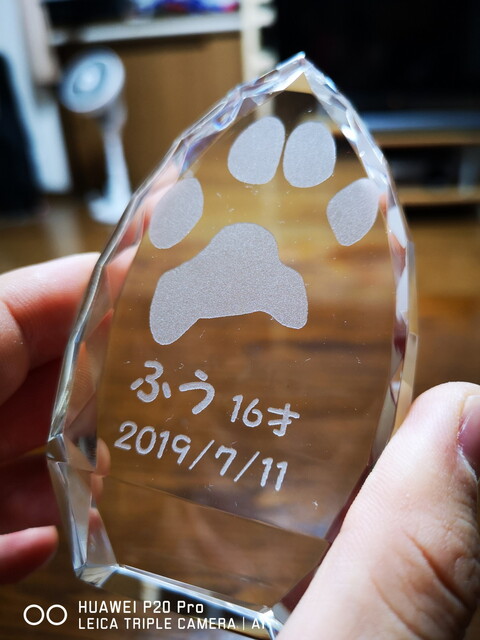 素敵な位牌が完成しました。風の左前脚の写真を撮ってもらい、実際のサイズも測ってもらってこの柄が完成しました。