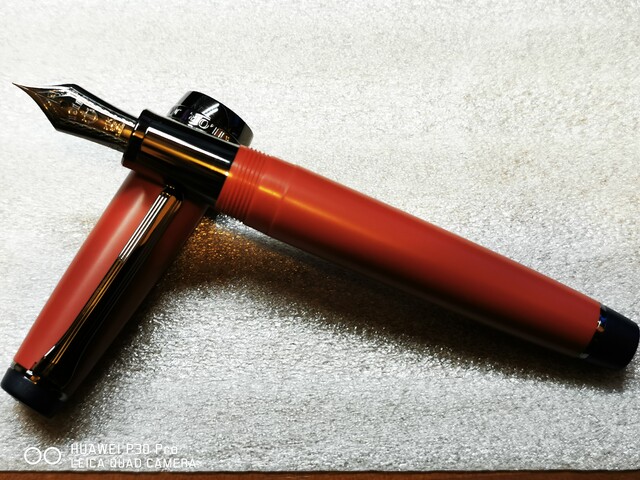 購入したのはF、細字。このペン先はブラックラスター系の前重心のもの。これはいずれ極黒を入れて会社でのメモなどにガシガシ使うようにします。ただ、温羅伝説のこの美しい色をメモとして使うのは気が引ける。主戦は中細字にしたい。ここからの狙いとしては、「同じマットブラック系のインペリアルブラック中字をゲットする」→「温羅のF字をインペリアルブラックに移植する=マットブラック・プロフェショナルギアスタイルのブラックラスターが完成」+「インペリアルブラック中字の首軸を温羅伝説に移植、中字ペンとして使う」となります。