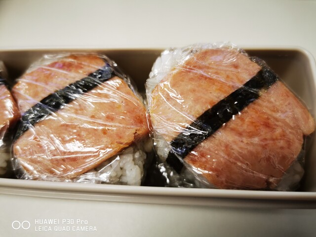 スパムおにぎり、塩味がちょうどよくて旨いんです。