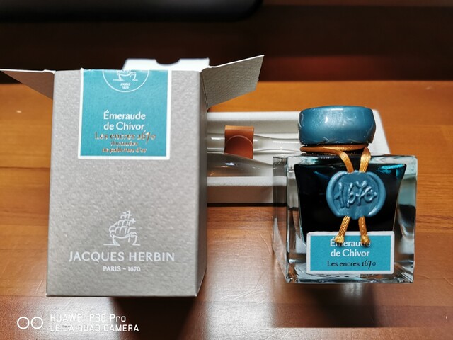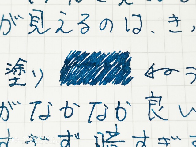 でも、落ち着いたエメラルド色で、明るすぎず暗すぎず、ラメさえ入っていなければ普通の万年筆に入れて普段使いしたいくらい良い色です。