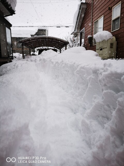 我が家の庭の奥から道路の方を撮影。カーポートに積もった雪をなんとか降ろしきりました。カーポートの雪下ろしをしたのは娘が小学生に上がる前だったのではなかろうかと。あの頃は風さんもまだまだ元気で、雪の中、外に出されていたような記憶が・・・今思えば「風、すまん!」と言う感じですが、そんなことを思い出したりしながら雪かきをしてきましたとさ。