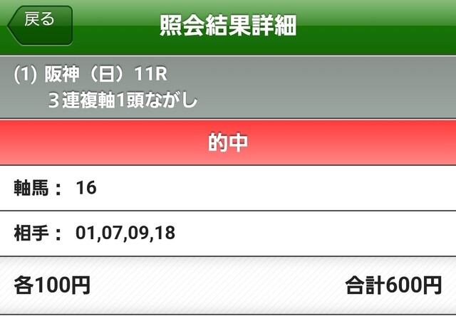 わずか100円ずつですが的中、1500円ちょいが戻ってきたので900円ちょいの儲け。それよりも5頭買ってそれが1着から5着にきっちり入るのが気持ち良い。完璧な予想と言えます。