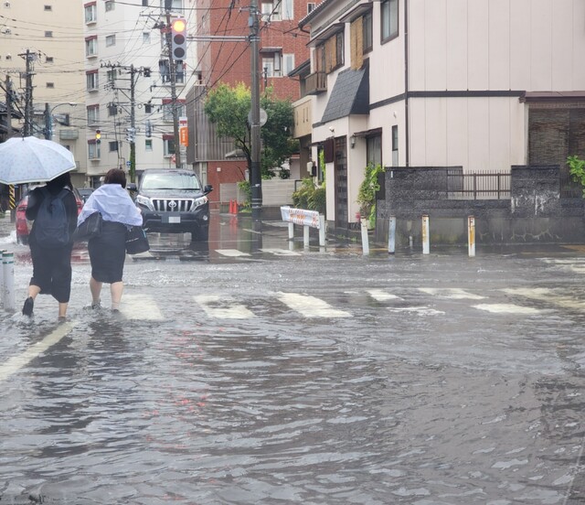 写真は豪雨の翌朝、仕事で新発田から関屋に向かう道中、みなとトンネルは冠水しておらず無事に古町方面に抜けたものの、新潟小学校近辺で冠水に遭遇してしまった場面です。10cm程度かと思うので車でなんとか行けましたが、なかなかに怖かったですねぇ。