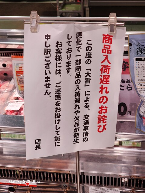 これからさらに雪が降る、ということで、ちょこっと仕事で出かける用事ができたものでついでに西新発田の原信に立ち寄ってみました。そうしたらご覧の通り。
