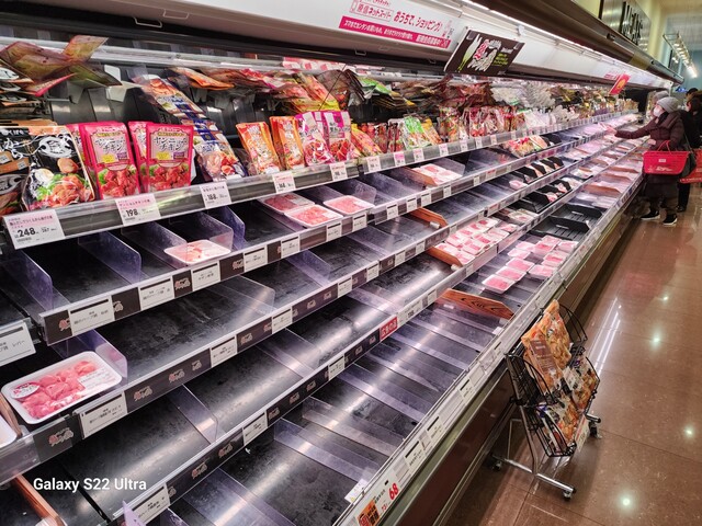 魚・肉・野菜などの生ものはご覧の通りほぼ在庫なし。パンなんて全滅です。