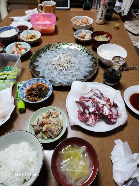 元日のディナーは、家族全員初体験の「ふぐ刺し」です。
