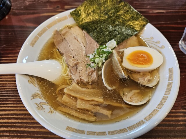 スープ、あさりの味がよく染み込んでいて、かつ白醤油の適度な甘味ととてもマッチしていてめちゃくちゃうまい。醤油ベースのラーメンではここ最近ナンバーワンのスープ。