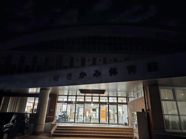 そんな中、煌々とと光る灯を見つけました。大きな建物、体育館です。平日の20時を過ぎて、地元の人がサークル活動か何かをやっているのでしょうか、恐る恐る近づいてみると管理人のような方がいらっしゃったので「トイレ貸してください!」といったところ、快く「どうぞどうぞ~」と。まぁ公共の建物なので断る理由はないのでしょうが、本当に助かりました。笹神村の体育館、ありがとう。