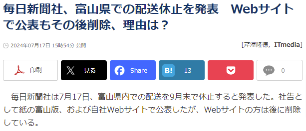 ※タイトルは、実際に起こっていることの一部を切り取って誇張した表現です。具体的には終了することの目的語が抜けています・・・意図的に抜きました。でも、昨今もてはやされるネット上に低品質な切り取り記事はこのような書き方をしていますよね。これをさらに切り取るのであれば「毎日新聞、終わる」みたいな書き方をするのでしょうね。当たらずとも遠からず、「うそを書くな!」と言われてもギリギリ「嘘ではないですよ、言葉足らずですいません」と言えなくもない表現でしょうかね。でもそんなつまらん記事の書き方に頭を使ってもなんも面白くもないと思うのですけどね。でも、世の中にはそんな記事・ニュースがあふれている感じがします・・・。で、本文。