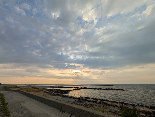 娘のお迎えに来たのですが、時間を潰す場所の当てがなくなってしまい、車を停められるところ、ということで行きつきました。お迎えまではあと40分、移動に20分だから、もう少し海を見ながらぼんやりしていよう。