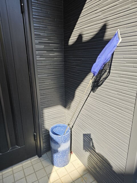いやまぁタモに季節も何もないのでしょうが、基本は水遊びとかで使うやつだと思うので一気に寒さをまして紅葉も本格化し始めた今のこのタイミングでタモが玄関においてあるのはまさに季節外れで言えましょう。