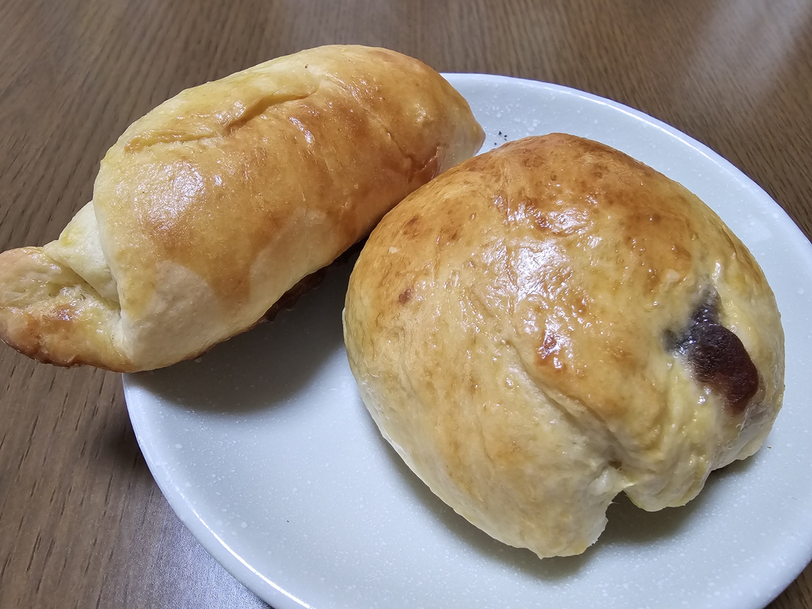 今日も相棒パン。塩パンとアンパン。うまい。