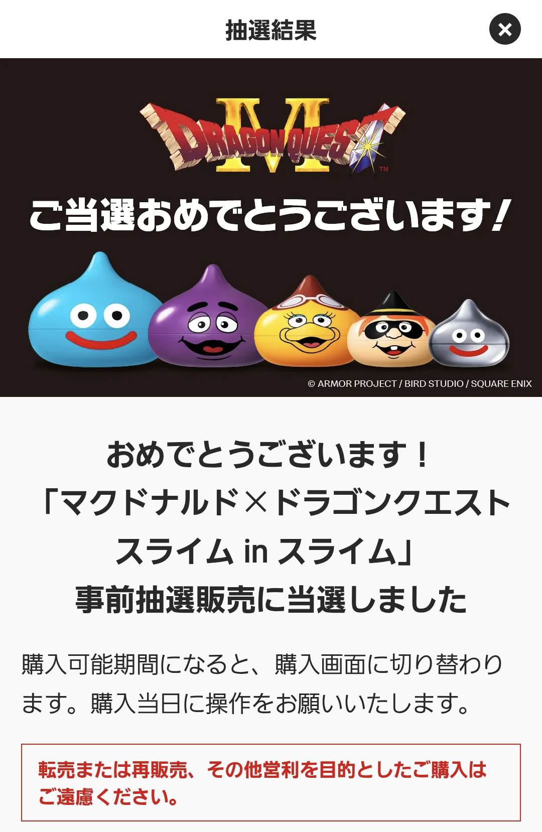 人気もあるだろうしまぁ当たらんだろう、なんて思っていたら当たってしまいましたねぇ。はてさて、せっかくなので購入しますが持っていてもなぁ。もしやと思ってみてみると、あるわあるわ転売の出品が。3000円のブツが下は4000円から上は6000円(10000円という強気の値付けもありました)くらいまで驚くくらい出品されていました。転売はさすがに気が引けますのでいったん持っておきましょうか。メタルスライム大好きなんで。