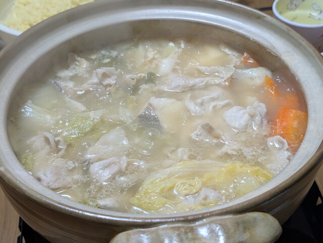今日は鍋でございます。鯛風味、うまそう!