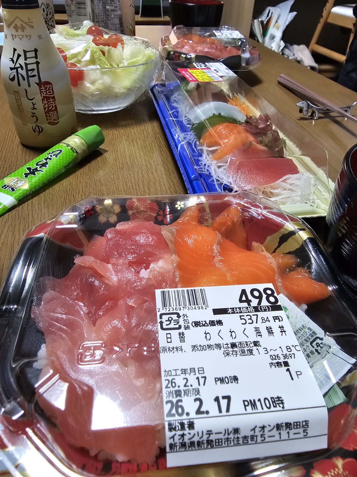 相棒が用意した海鮮丼づくし。娘の快気祝いと、定期テストお疲れ様祝い。ほんとよく頑張った。熱があっても咳が出ていてもちゃんと勉強していましたからね。だからこそ1日でも試験を受けられなかったことには思うところがあるかもしれませんが、十分なのです。本当に頑張ったので、結果は別の話です。過程が大切ですから。本当にお疲れ様でした。
