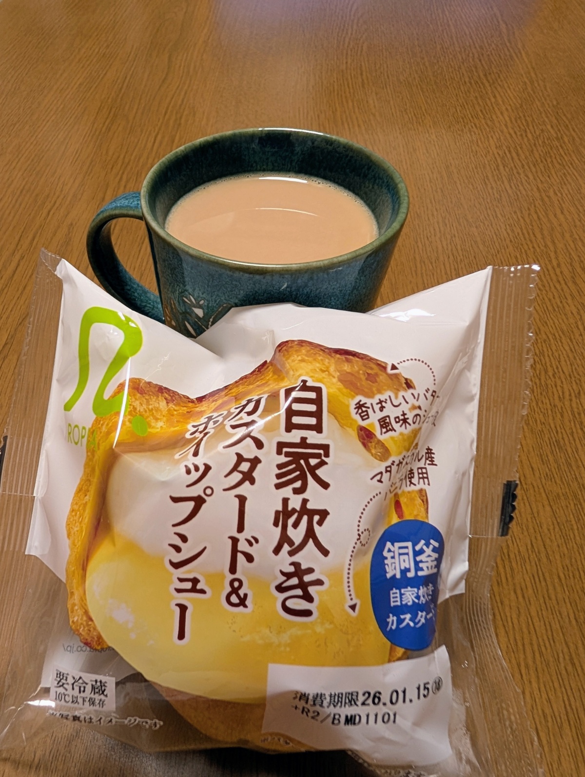 相棒がイオンで買ったロピア製造のシュークリーム。イオンとロピアの関係が気になる次第。