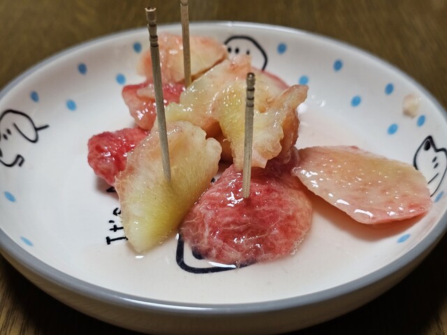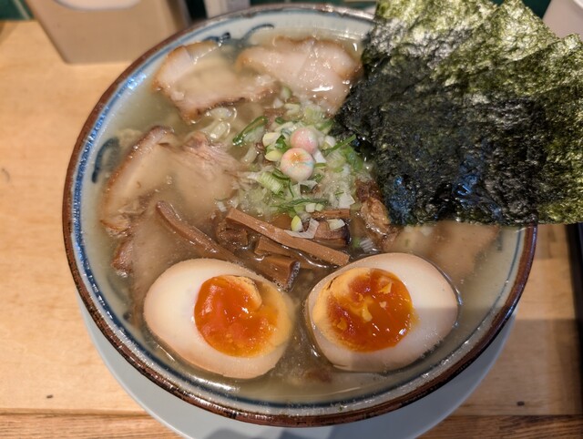 チャーシュー、特製だとふつうのよりもチャーシューの量が多くなっていると思われる。場所によってはややしょっぱさが過ぎる気もするが、それもアクセントと考えながら麵と一緒にほおばって食べるととてもおいしい。臭みも全くないと思う。好み。