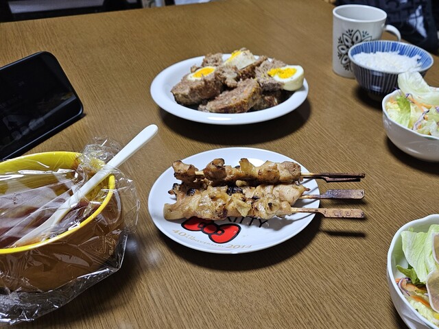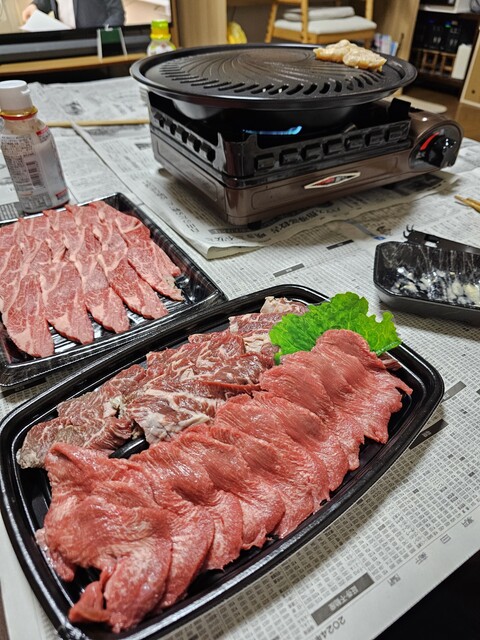 さてさて、娘が塾から帰ってきて、駅まで迎えに行って帰ってきたのが10分ほど前(18:10頃)。相棒と娘が風呂に入っている間に、わしは先んじて焼き肉を開始します。なぜならわしは食べるのが人の何倍も遅いから。ということで一足先に焼き始めて食べ始めて長めの時間をかけてまったりと食べていきます。