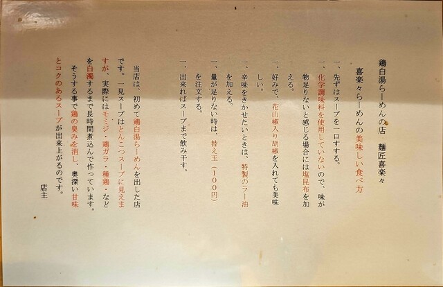 おいしいけど、ここでなければ!みたいな特徴もないか。ホール担当の対応が不十分な点も気になった。声が小さく何を言っているのか聞き取りづらい、日本語が片言で説明がわかりづらい、この限定はスープに「マー油を入れるかラー油を入れるか選択できる」という商品のようだが、「マー油? ラー油?」というのは正しい日本語でしょうかね?と良い気分はしませんでした。外国人の方だから、というはわからんでもありませんが、ここは日本で日本のお店であることを考えると、過度な対応を求めるつもりはありませんが日本らしい最低限の接客ではあってほしくはありますね。味も含めてリピートはないですし、お勧めもしません。