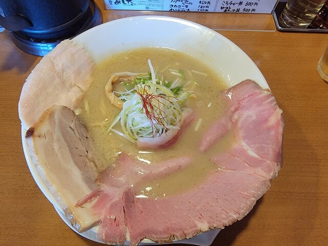 メニューにチャーシュー麺がみあたらず、標準で950円にトッピングするとずいぶん高くなると思い標準メニューを頼んだがこれだけたっぷりチャーシューがのってこの値段ならむしろコストパフォーマンスはとても良い。