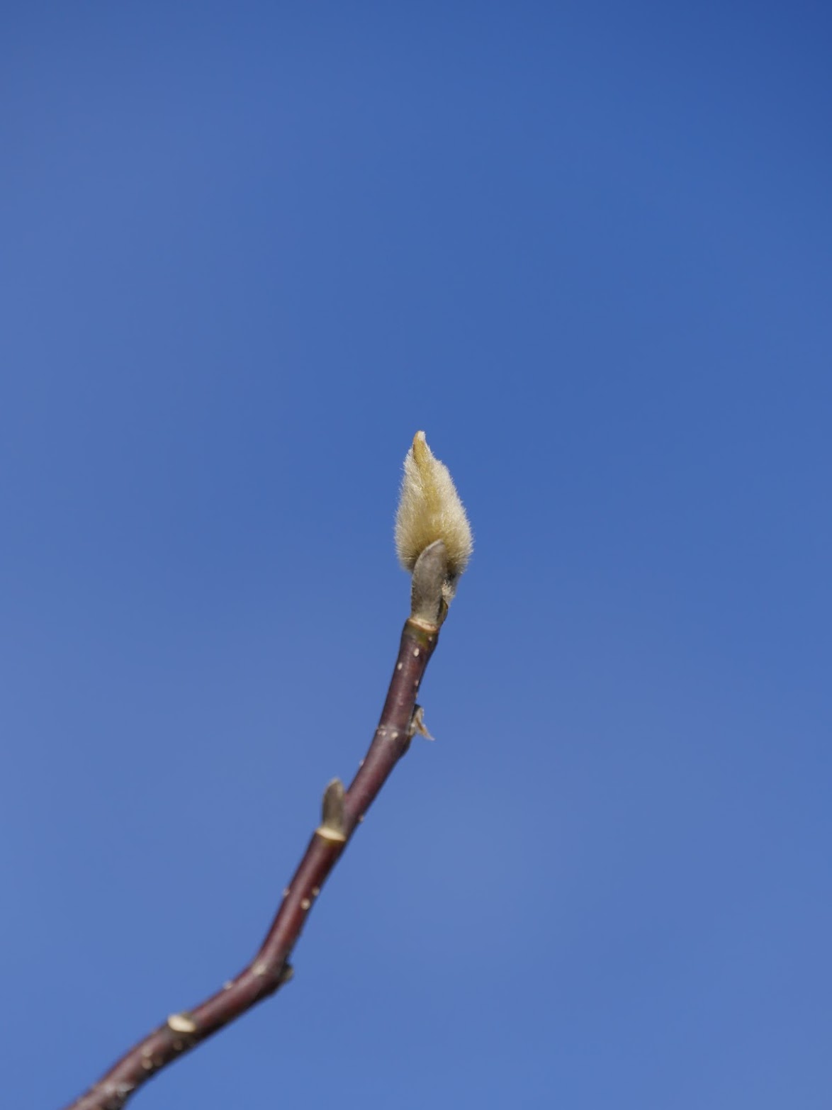 こちらも望遠端で撮影。なんだっけ、モクレンのつぼみですね。
