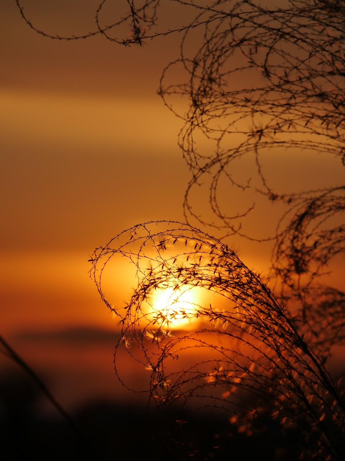 手前に枯れすすきを入れて今にもくれ落ちそうな太陽を背景に撮影。これまた印象が強く、良い画が出てくれました。