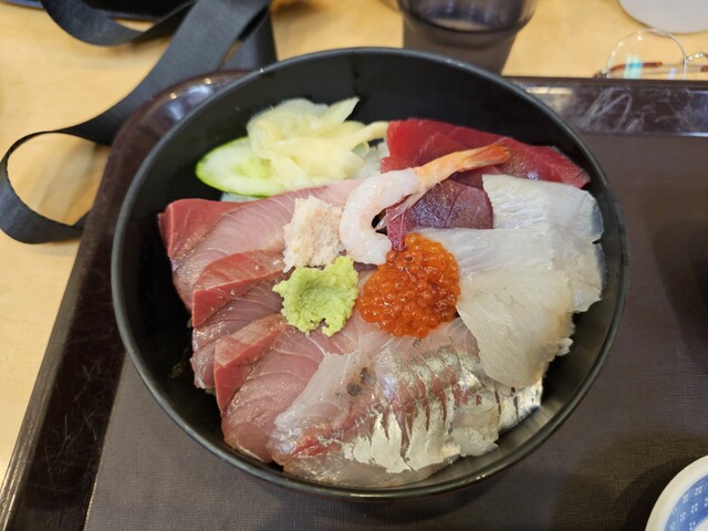 金額は1,500円と海鮮丼としては十分にリーズナブルですが、実際食べてみると(写真でもわかりますが)海鮮の身の厚さ、大きさともに驚くレベルでかなり満足感が高いです。市場併設で新鮮度が高いのかマグロがやや苦手なわしでも問題なく食べられるほど(赤身独特の風味がほとんどない)。とてもおいしかったです!!