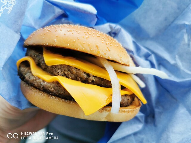 相棒は限定メニューの「クリームチーズ照り焼き」、わしと娘は「とびきりハンバーグサンド」。