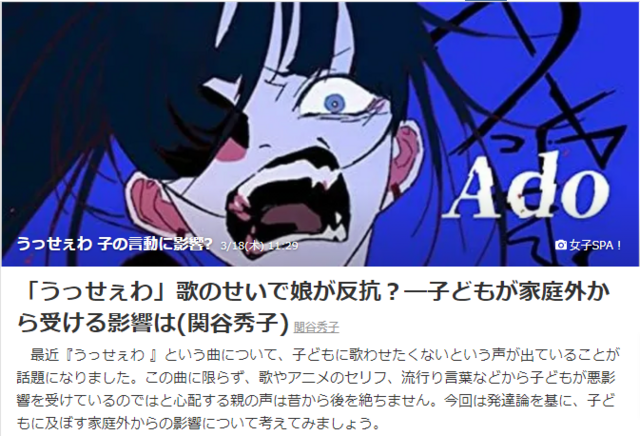 ですから、娘もこの曲は好きなようで良く聞くのですが、正直言えば聞かせたくないし歌わせたくない。何かあった時に「よし頑張ろう」ではなくて「うっせぇわ」という思考になってしまってほしくないからです。でもですね、だからと言って「こんな歌は聞くもんじゃない」という大人にとっては納得できるものであっても子供にとっては到底理解できない理屈を押し付けることの方がリスキーでしょう。だから放っておきますし、何なら一緒に歌ったりもします。