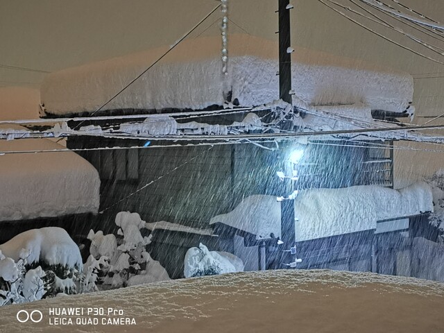 それが起きてみてみたらこれ。恐らく明け方からの数時間でこれだけ降って積もったのだろう。この短時間で1mほどの積雪というのは異常。週末でよかった・・・これで出勤とか地獄ですからね。
