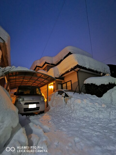 ここに住むようになっておよそ20年になるがその中で一番積もったとみられる。昨日(1月9日)の夕方15:30頃に仕事から帰ってきて自宅でテレワークに切り替えたのだが、その時点ではもちろん車に雪はなかったことになる。カーポートも相棒が多少雪を降ろしてくれていたようで10cmも積もっていなかった。