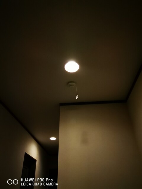 こちら、我が家の二階廊下。階段上ってすぐの所とトイレの前にライトがあります。この二つをスマートなヤツに換えました。スマート、つまりネットにつながってスマホからいろんなことできるぜ、ってやつです。