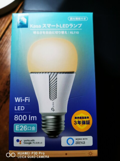 まず、LEDなので省電力、一般的な白熱灯の十分の1の電力使用料。写真はとても暗く写っていますが、これは不良品とかそういうことではなく、明るさを1%~100%まで100段階で細かく設定できるので、深夜と言うこともあり「1%」の明るさに設定しているわけです。さらに省電力。