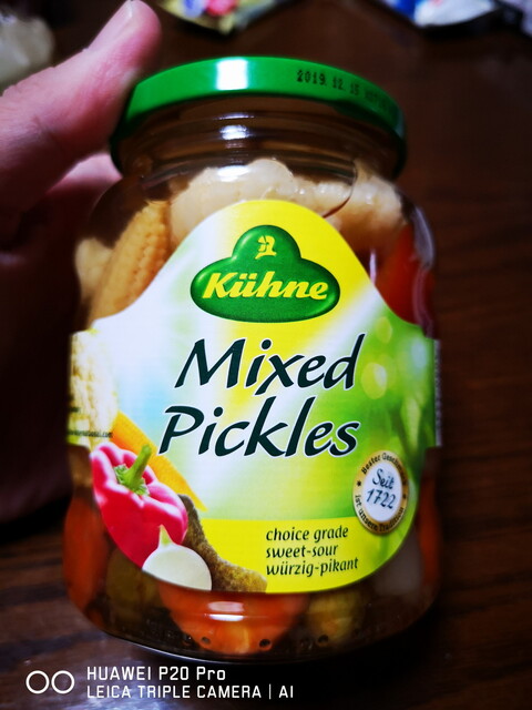 相棒にはこちらがお土産。ビックカメラで見つけた「キューネ ミックスピクルス made in Germany」。