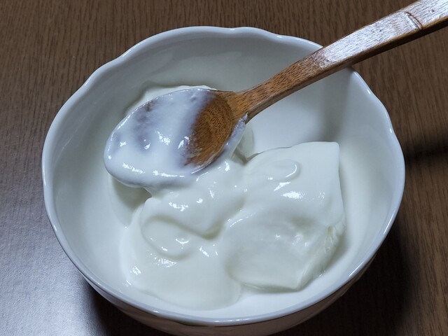 ウオロクで見つけて買ってきました。甘すぎたりしたらイマイチかも、と思いながら食べてみるとほんのりうっすらとはちみつの甘さがある程度でとても美味しい。クリーミーで口触りも好み。気に入りました。