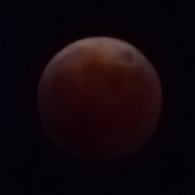 また、月食中=明るさとしては最低限の状態の中、スマホのカメラでここまで写れば大したもの。